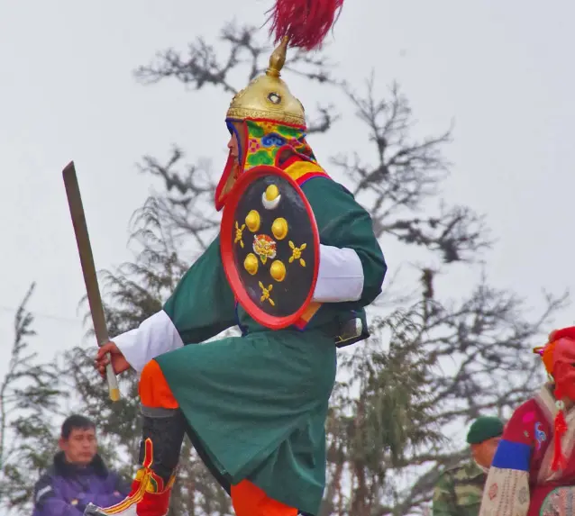 The Jambay Lhakhang Drup, held at one of Bhutan's oldest temples, is an exciting festival featuring the fire offering and the naked dance, both performed on the full moon night. Locals believe that passing through the fire arch removes obstacles, while the naked dance symbolizes primordial wisdom, helping to overcome fear and anxiety. The festival also includes other vibrant dances, such as the Dance of the Four Garudas, the Stick Dance, and the Drum Dance of Dorji Lingpa.
